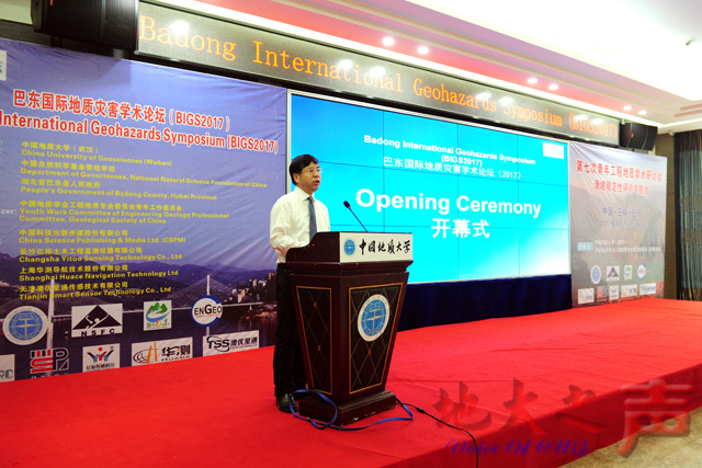 pp电子党委副书记唐辉明主持论坛开幕式并代表学校致辞,巴东县人民政府县长郭玲、国家自然科学基金委地球科学部二处主任熊巨华、国土资源部地质环境司地质灾害防治处处长李晓春分别致辞,恩施州人民政府副州长程水源宣布论坛开幕。