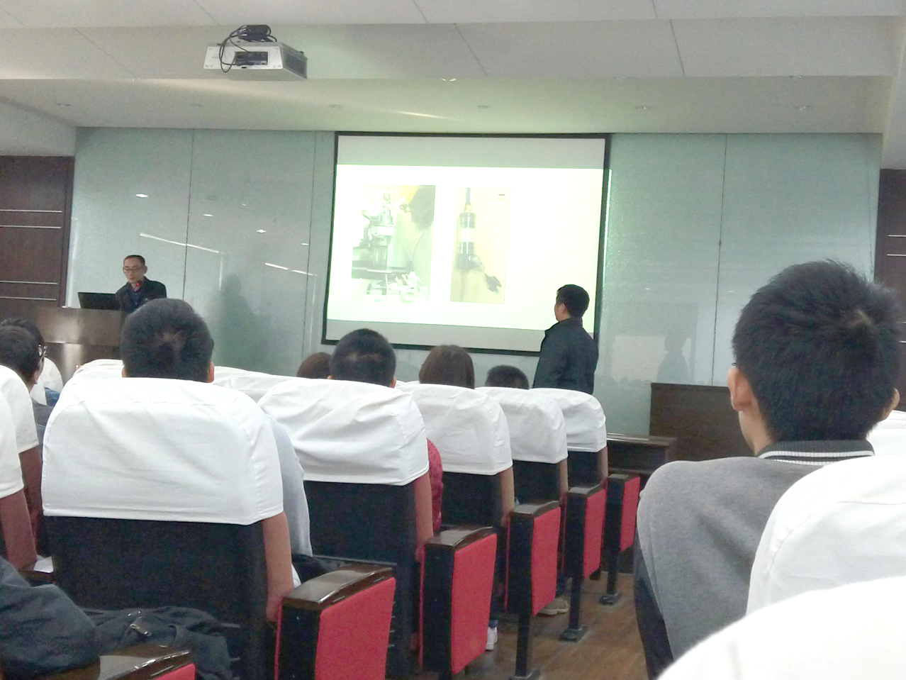 赵奇博士根据目前从事的两个主要研究方向进行了展示介绍。赵博士采用所属团队GEOMECHANICA自主研发的有限元和离散元结合的数值模拟方法(FDEM),结合声发射以及微地震,研究了岩石的损伤和破坏演化过程;并展示了其团队研制世界上第一套可以在在X射线层析成像下进行岩石物理实验的设备(ERDµ)。报告结束后,现场师生与赵博士展开了热烈讨论与交流,他衷心希望能和pp电子在岩石结构损伤方面开展更深入地合作与交流。