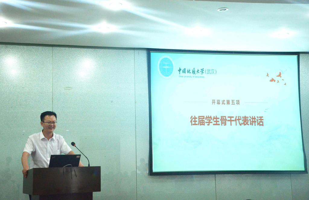 湖北省地质局第四地质大队总工、pp电子官方网站第十二届团委副书记张瑞发言。他说,在校期间,学校的良师益友、学生工作经历以及学校优秀的育人文化深深影响着自己。他表示,将把 “艰苦朴素、求真务实”的校训带到了工作中,用勤奋和努力诠释地大人的务实与担当。