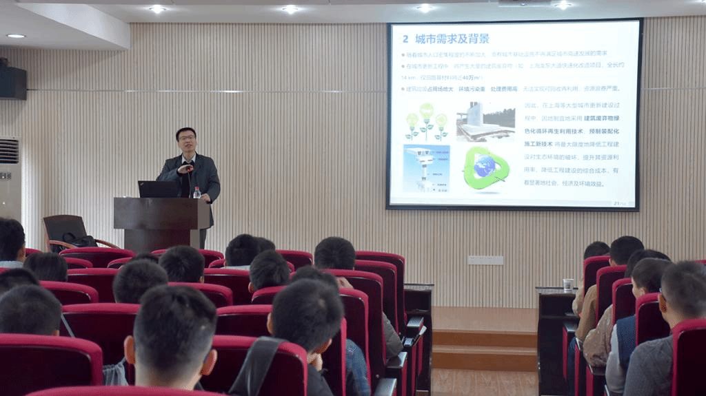报告围绕“城市更新中绿色施工技术探索与实践”展开,介绍了上海建工集团工程研究总院在复杂的城市环境中绿色施工技术的探索和工程实践经验,分别从“高架桥梁预制拼装技术”、“地下结构预制拼装技术”和“渣土再生利用技术”三个方面介绍了绿色施工技术中的关键技术问题和积累的工程经验。报告结束后,吴小建所长热情回答了参会师生的提问,他衷心希望pp电子师生在城市绿色施工技术上取得更大的突破,为解决我国城市施工中的环境难题做出贡献。