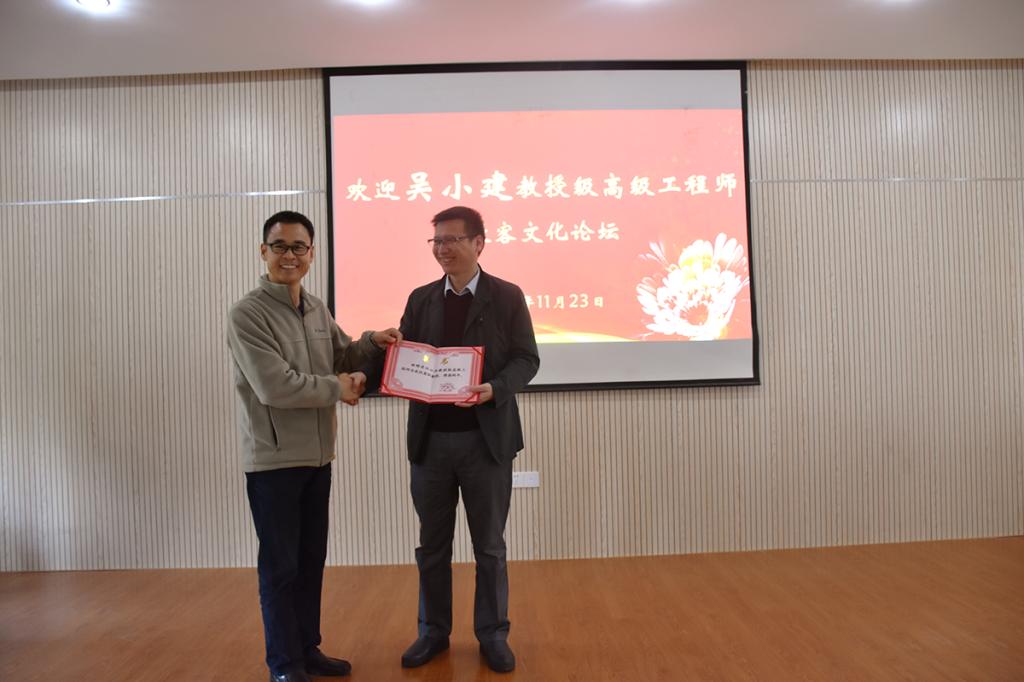 学术报告开始前,窦斌代表学院向吴小建教高颁发pp电子的兼职教授聘书,期待吴小建教高为pp电子相关学科的建设、高级人才的培养积极建言献策,为pp电子学生实践提供学习平台。