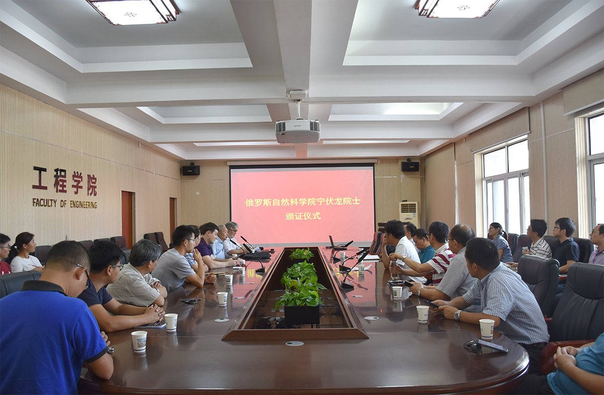 pp电子官方网站党委书记陈飞主持本次仪式。首先,院长焦玉勇教授对宁伏龙教授的主要学术成就做了简单介绍。之后,契霍特金教授向大家介绍了俄罗斯自然科学院基本情况以及外籍院士的遴选过程,并代表俄罗斯自然科学院为宁伏龙教授颁发院士荣誉证明、院士证和徽章。随后,宁伏龙教授发表荣获俄罗斯外籍院士感言,表示今后会更加致力于本职工作,积极推动与俄罗斯等国家高校、研究院所的国际合作,为学校“双一流”建设作出更多贡献。最后,王林清副书记发表讲话,对宁伏龙教授获此荣誉表示祝贺,并对宁伏龙教授及pp电子官方网站今后的工作提出了更高的要求。