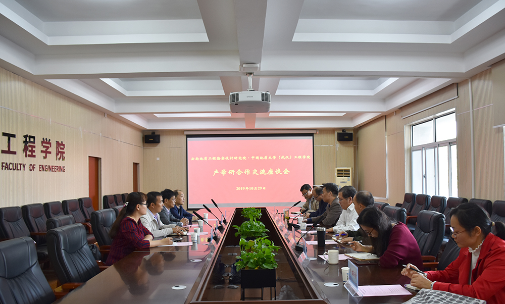 29日下午在工程楼315会议室,云南地质工程勘察设计研究院纪委书记潘进兵、副院长赫念学、副院长李林涛、办公室主任张锦霞一行至校与pp电子举行产学研合作交流座谈会。院党委书记陈飞、副院长王亮清、院党委副书记江广长、工程地质与岩土工程系主任章广成、勘察与基础工程系主任卢春华、办公室主任胡燕、土木工程与力学系周丽珍参加了座谈会。江广长主持会议。