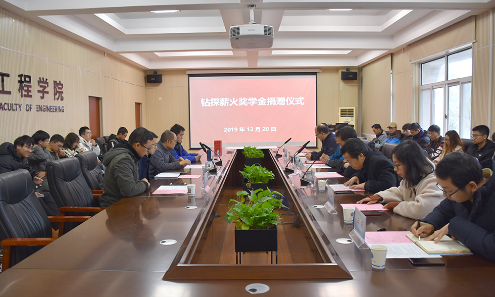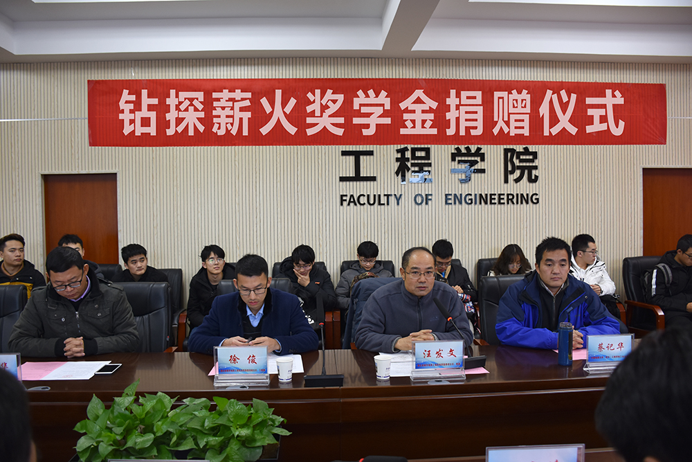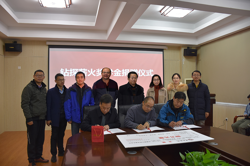 12月20日,pp电子官方网站“钻探薪火奖学金捐赠仪式”在工程楼315会议室举行。湖北省城市地质工程院勘查部主任汪发文、副主任徐俊,校友工作与教育基金管理处副处长吕占峰,pp电子官方网站党委书记陈飞,副书记江广长,勘察与基础工程系教授段隆臣、蔡记华、卢春华及2017级部分学生代表参加捐赠仪式。