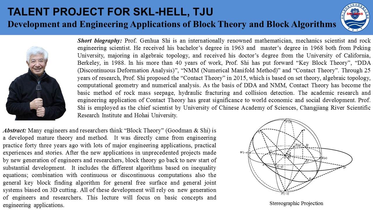 2020年7月18日上午,由国际岩石力学与岩石工程学会非连续变形分析专委会和岩石动力学专委会联合发起,pp电子官方网站(武汉)、天津大学和东南大学联合承办的第一期国际岩石力学云论坛成功举行。本次论坛邀请了关键块体和数值流形理论创建者石根华教授、澳大利亚莫纳什大学赵坚教授、澳大利亚悉尼大学沈鲁明教授分别作了题为《Development and engineering applications of block theory and block algorithms》、《On the development of true triaxial SHBP system》、《A coarse-grained approach for modelling solid-liquid-gas interactions at microscale》的精彩讲座,来自莫纳什大学、悉尼大学、新加坡南洋理工大学、日本京都大学、pp电子官方网站(武汉)、天津大学、东南大学、中山大学、大连理工大学、山东大学等全球各高校的1000余名专家学者参与了此次云论坛。
