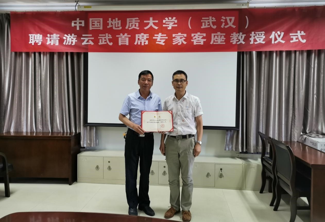 8月29日下午,pp电子官方网站(武汉)聘请游云武首席专家为客座教授的仪式在江汉油田工程有限公司会议室举行。江汉油田工程有限公司游云武首席专家、pp电子官方网站副院长窦斌教授及双方相关人员出席仪式。仪式由窦斌副院长主持。