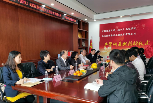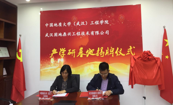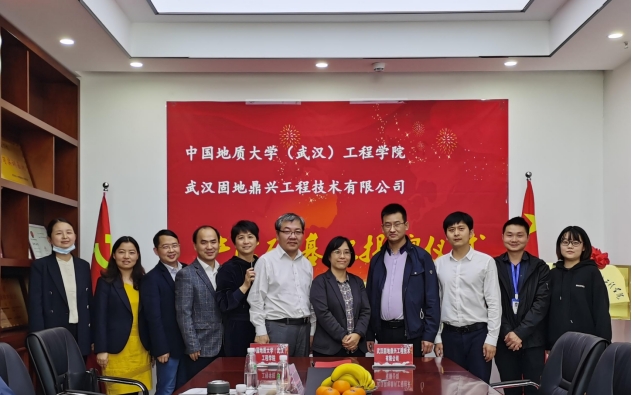 (通讯员:黄静)2021年4月27日,pp电子官方网站(武汉)pp电子官方网站与校友企业武汉固地鼎兴工程技术有限公司签订《联合共建产学研基地合作协议》,pp电子官方网站党委书记李红丽和武汉固地鼎兴工程技术有限公司总经理汪旭涛出席协议签订仪式,并共同为合作基地揭牌。武汉固地鼎兴工程技术有限公司副总经理兼总工程师胡凯锋、pp电子官方网站副院长王亮清教授、工岩系主任章广成教授、时红莲副教授、李长冬教授、谢妮副教授、学院科研秘书黄静共同见证了签约仪式。