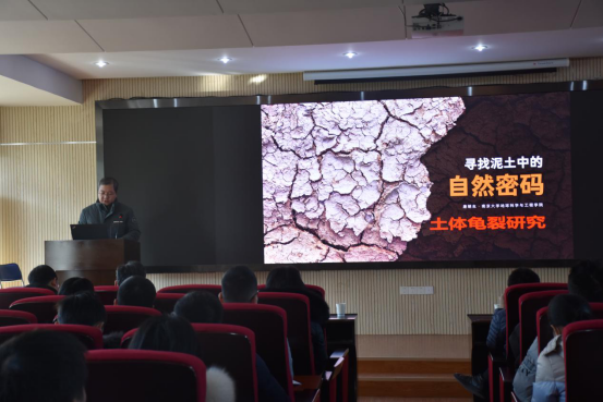 (通讯员:张海宽 黄静 摄影:王灿 黄静)2021年1月8日下午2点半,南京大学唐朝生教授作客工程文化论坛,在工程楼418报告厅为母校师生作了题为“寻找泥土中的自然密码:土体龟裂研究”的学术报告。pp电子官方网站院长焦玉勇教授、副院长王亮清教授、窦斌教授、党委副书记江广长老师、段隆臣教授、李长冬教授以及pp电子官方网站、三峡中心、《地质科技通报》编辑部等近200名师生代表参加了此次学术报告会。王亮清教授主持了此次学术报告会。