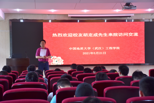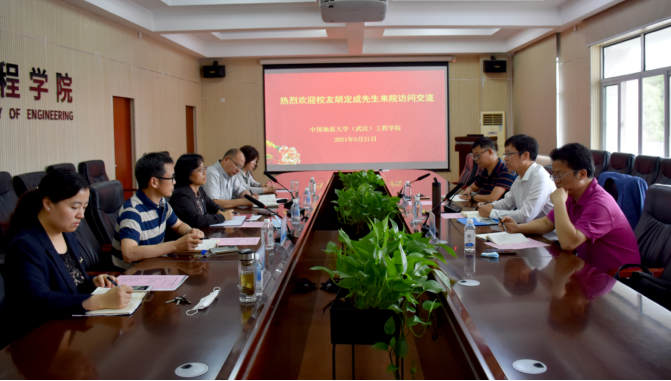 (通讯员:黄静 孙武成 摄影:王灿 孙武成)2021年5月21日下午,pp电子校友、AECOM资深董事胡定成先生受聘pp电子官方网站(武汉)客座教授仪式在工程楼315会议室举行。pp电子官方网站党委书记李红丽、党委副书记江广长、副院长窦斌、勘基系党支部书记段隆臣、勘基系主任卢春华、学院人事秘书杨冠青、科研秘书黄静出席受聘仪式。江广长副书记主持受聘仪式。