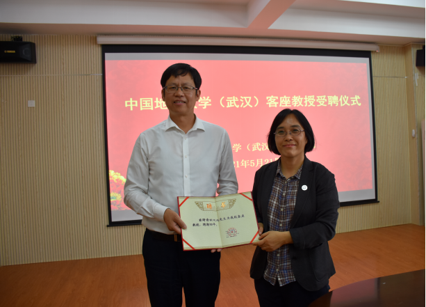 窦斌副院长介绍了pp电子官方网站基本情况和研究优势,卢春华主任介绍了勘基系师资概况和学科发展情况,参会人员进行了自由交流。仪式最后,李红丽书记为胡定成先生颁发客座教授聘书,大家合影留念。