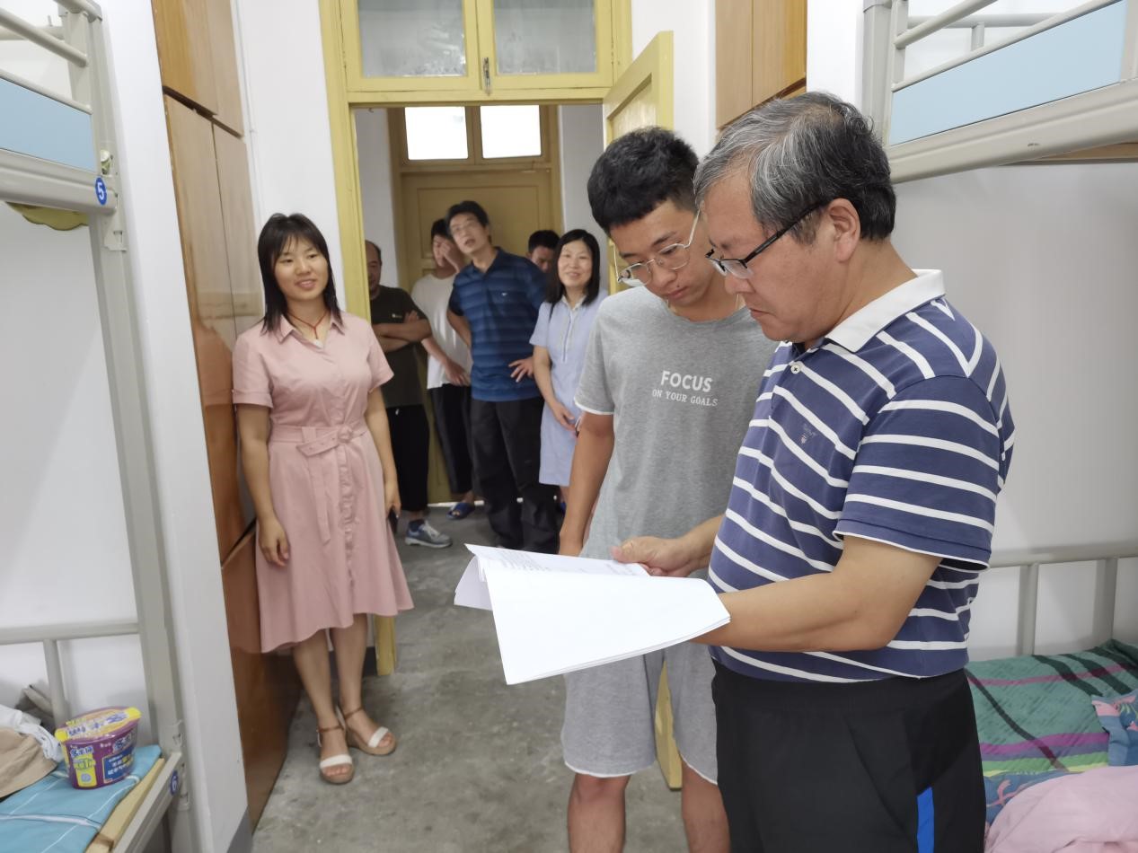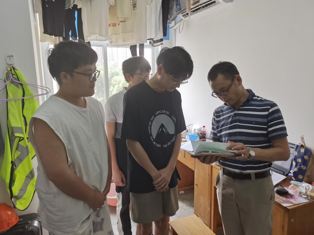 2021年7月20日,pp电子官方网站副院长窦斌、教务科科长栗佑城赴秭归产学研基地慰问正在进行野外实践教学的教师,并与带队教师代表王亮清、张家铭等一同走访学生宿舍,看望050181、051181、051182、051193、051194等五个班级的在站学生。