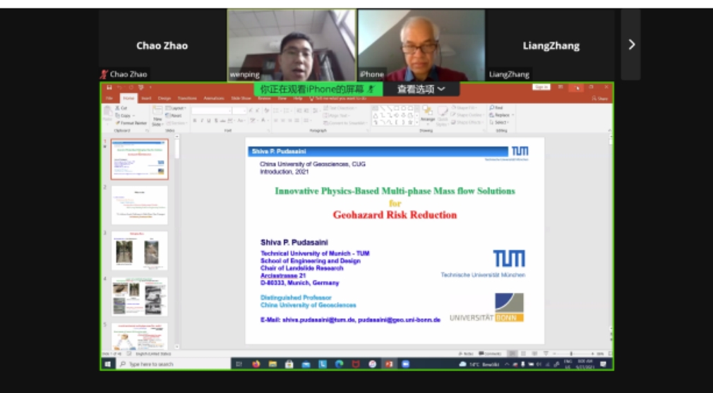 (通讯员:邢磊 赵超)2021年9月27日下午,应“重大地质灾害预测与预防学科”111创新引智基地唐辉明教授和龚文平教授邀请,德国慕尼黑工业大学Shiva P. Pudasaini教授通过Zoom meeting平台为pp电子师生作线上学术报告。pp电子官方网站龚文平教授主持报告会,40余名师生在线聆听了此次报告。