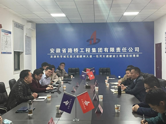 授牌仪式结束后,双方到花园大道项目部进行现场考察,了解工程的进展情况以及工程中出现的问题,并对问题的解决方案进行探讨。现场考察结束后,pp电子官方网站老师张伟丽、彭超、吕加贺、曾聪以及四位研究生在花园大道项目部对前期合作的科研课题进行阶段性汇报,并与安徽省路桥集团的项目负责人对相关问题进行了热烈的讨论。与会人员还围绕如何做实做好基地建设工作、联合培养研究生、科研攻关等内容进行了研讨,一致表示将不忘初心,继续加强校企合作,把科研成果应用在祖国大地上,培养出满足企业需求的人才。