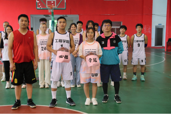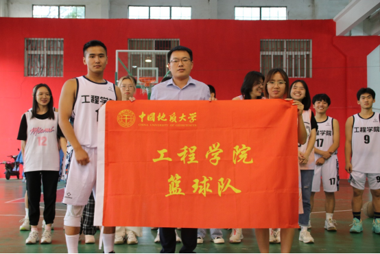 校团委挂职副书记、安全系教工党支部书记、工程教工篮球队队长周克清为篮球队授旗,新校区建设指挥部副处长、pp电子官方网站2004级土木工程毕业生陈胜和pp电子官方网站工岩系博后郑罗斌为男队和女队颁球。