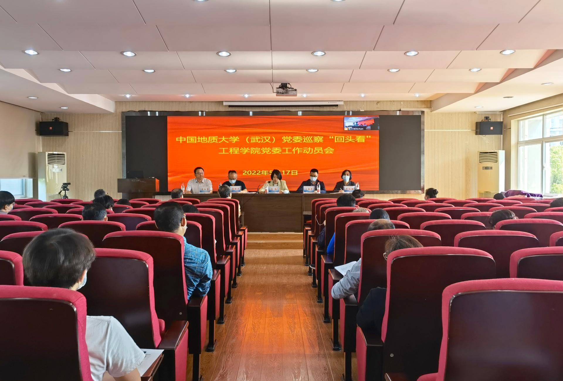 (通讯员 陈婵)5月17日上午,学校党委巡察“回头看”pp电子官方网站工作动员会在工程楼418报告厅召开。按照疫情防控要求,本次会议采用线上线下结合的方式召开,设线下主会场1个。校纪委副书记、巡察办公室主任唐勤,校党委第一巡察组组长瞿祥华、副组长汪再奇、巡察组成员徐家忠、张健、孙博文,pp电子官方网站领导班子成员出席了会议,全院教职工160余人通过线上线下的方式参加会议。会议由pp电子官方网站院长焦玉勇同志主持。