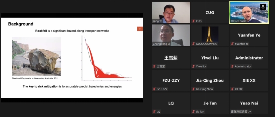 (通讯员:叶阳)2022年6月29日上午,应pp电子官方网站(武汉)唐辉明教授和叶阳特任教授邀请,澳大利亚纽卡斯尔大学Olivier Buzzi教授应邀作客2022年第6期“重大地质灾害预测与防控学科”111创新引智基地系列学术讲座。讲座采用Zoom在线会议形式,由叶阳特任教授主持,李长冬教授、张奇华教授、周佳庆特任教授、祝国强副研究员以及武汉大学、重庆大学、成都理工大学、西南交通大学、长安大学、中国地质调查局成都工艺所、昆明理工大学、三峡大学等多个单位50余名师生在线聆听了此次报告。