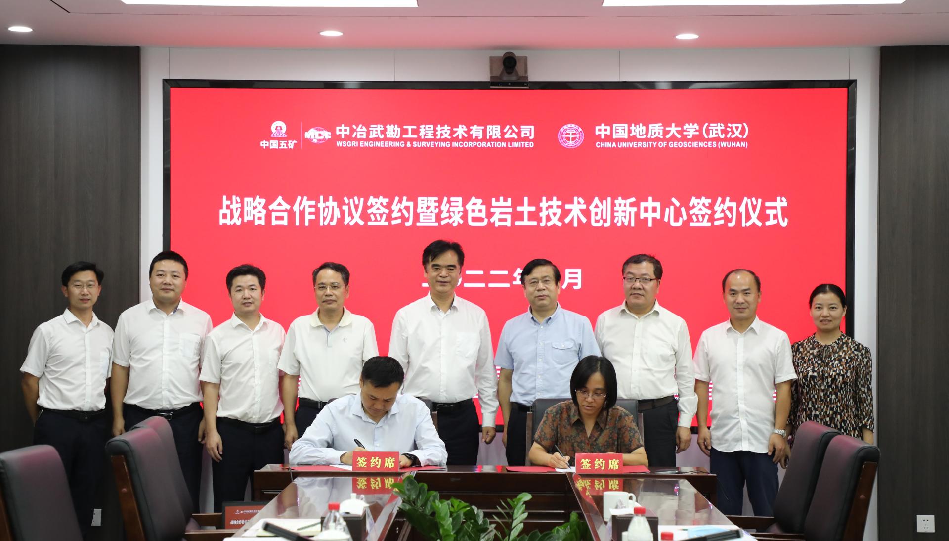 9月29日,pp电子官方网站与中冶武勘工程技术有限公司签署战略合作框架协议,并联合成立“绿色岩土技术创新中心”,深入推进产学研发展。pp电子官方网站党委书记李红丽和中冶武勘副总经理、总工程师江永建代表双方签署战略合作协议。pp电子官方网站(武汉)党委副书记唐辉明,中冶武勘党委书记、董事长臧中海见证签约并共同为“绿色岩土技术创新中心”揭牌。双方将把科教资源优势和工程技术成果转化优势紧密结合,在产学研用协同创新、人才培养等方面进行全方位的合作。