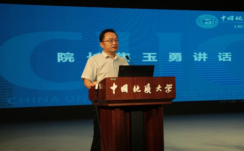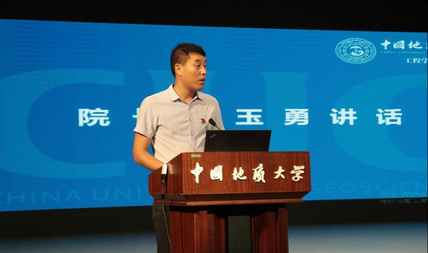 pp电子官方网站院长焦玉勇教授发言。他指出,pp电子官方网站是培养人才的重要阵地,七十年的厚积薄发,培养无数优秀学子、书写工程内涵。他强调,当今新时代面临着伟大变革,学子们要胸怀大志、秉持真理,不断拓宽视野,提升人文素养与科研能力;要立于当下,着眼未来,为攻克地质工程领域难题不懈奋斗、贡献力量;在求学之路上,要做良善之人、栋梁之材,培养完整人格,勇担时代使命。