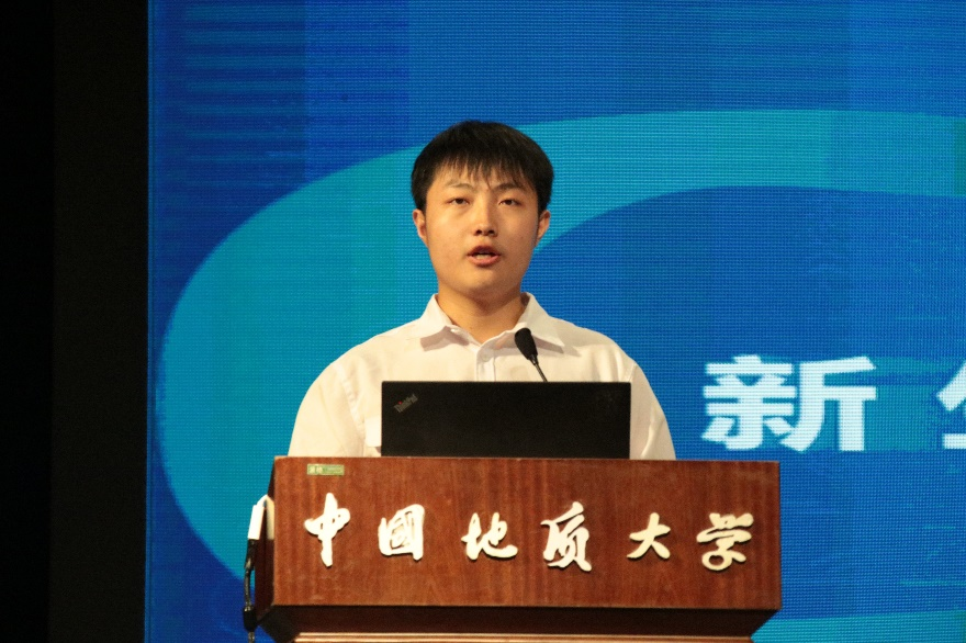 新生代表于耀捷发言。他说,作为一名新生,要不负“锤炼本领,迎接挑战”的殷殷期盼,承载pp电子官方网站七十年砥砺奋进、追求卓越的工匠精神,努力把自己培养成一名德才兼备的新型人才,展现新时代地大人的风采。