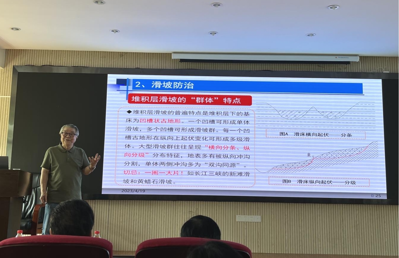 活动还邀请了中冶武勘工程技术有限公司副总经理占仲国教授级高级工程师、武汉市勘察设计有限公司副总经理、总工程师官善友教授级高级工程师、中国一冶集团有限公司副总工程师王平教授级高级工程师、湖北建鄂勘察设计审查咨询有限公司向艳正高职高级工程师、中南勘察设计院集团有限公司副总工程师马郧正高职高级工程师、长江勘测规划设计研究有限责任公司所长助理徐复兴正高职高级工程师、中国科学院武汉岩土力学研究所江权研究员、武汉理工大学芮瑞教授、武汉华太岩土工程有限公司吴西臣正高职高级工程师等莅临现场。pp电子官方网站唐辉明教授、李红丽书记、章广成教授、徐光黎教授、贾洪彪教授、葛云峰副教授、周佳庆特任教授等150多名师生在现场聆听了报告。