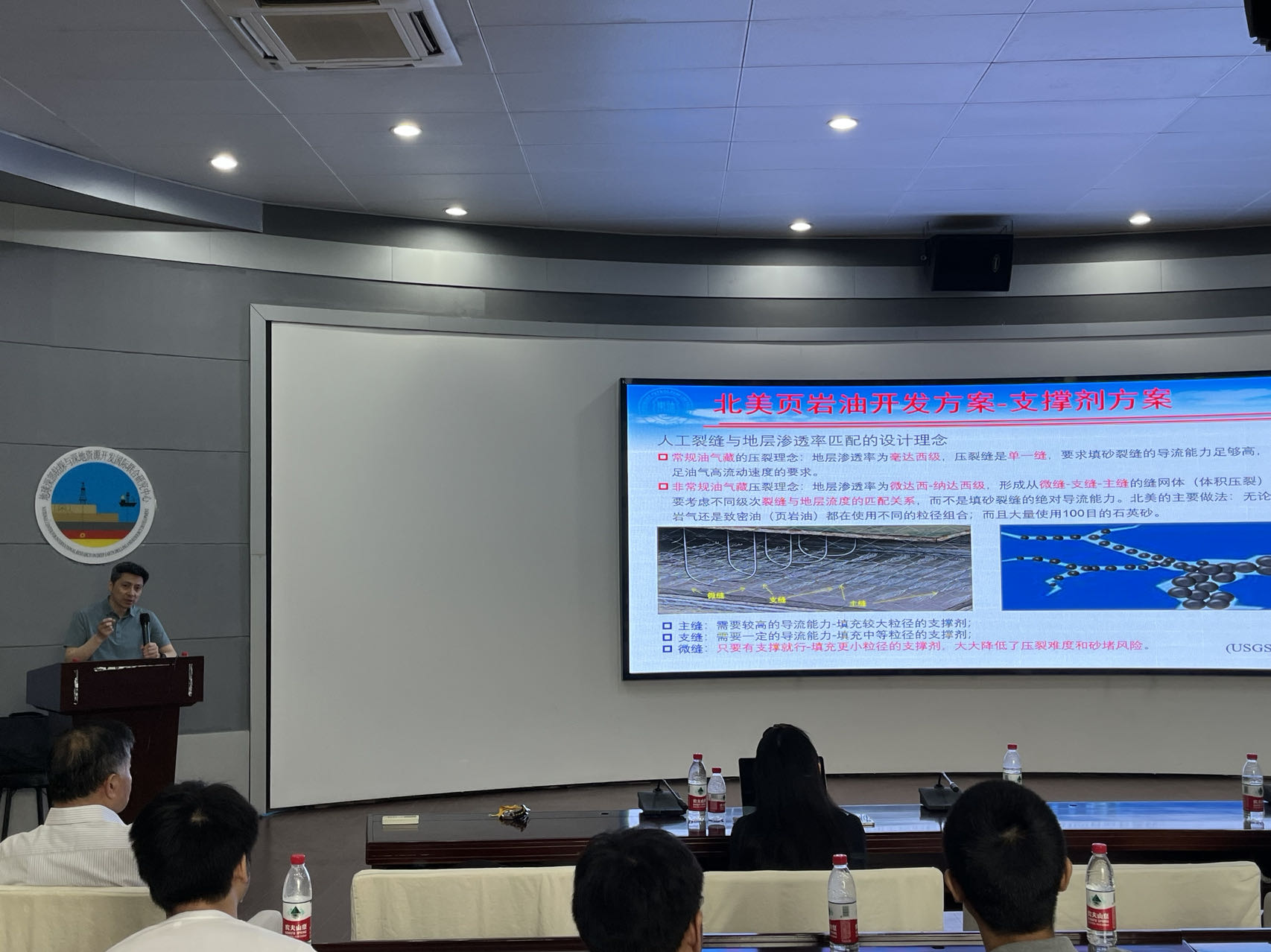 陈作荣研究员作了题为“测斜仪压裂监测技术及反演分析”的学术报告。水力压裂是非常规油气规模效益开发的关键技术之一,压裂改造效果决定油气采收率。目前各种监测技术被用于监测压裂改造,深入认识裂缝扩展演化行为和裂缝几何,进而评价压裂改造效果。陈研究员介绍了测斜仪压裂监测技术的基本原理,着重介绍了基于监测数据的反演分析方法和分析过程,最后通过两个实例进一步介绍了测斜仪压裂监测技术的现场应用。陈研究员指出,高精度测斜仪压裂监测技术能够有效地监测压裂引起的微小变形,通过反演分析能够获得压裂裂缝扩展和裂缝几何的重要信息;将测斜仪监测技术与其他监测技术(微地震技术、光纤技术等)集成,优势互补,进行联合反演,有望获得更加完善、可靠的压裂行为和裂缝几何信息;集成监测联合反演分析和压裂模拟技术,有望对页岩油压裂改造效果进行、更加准确、可靠的评价。