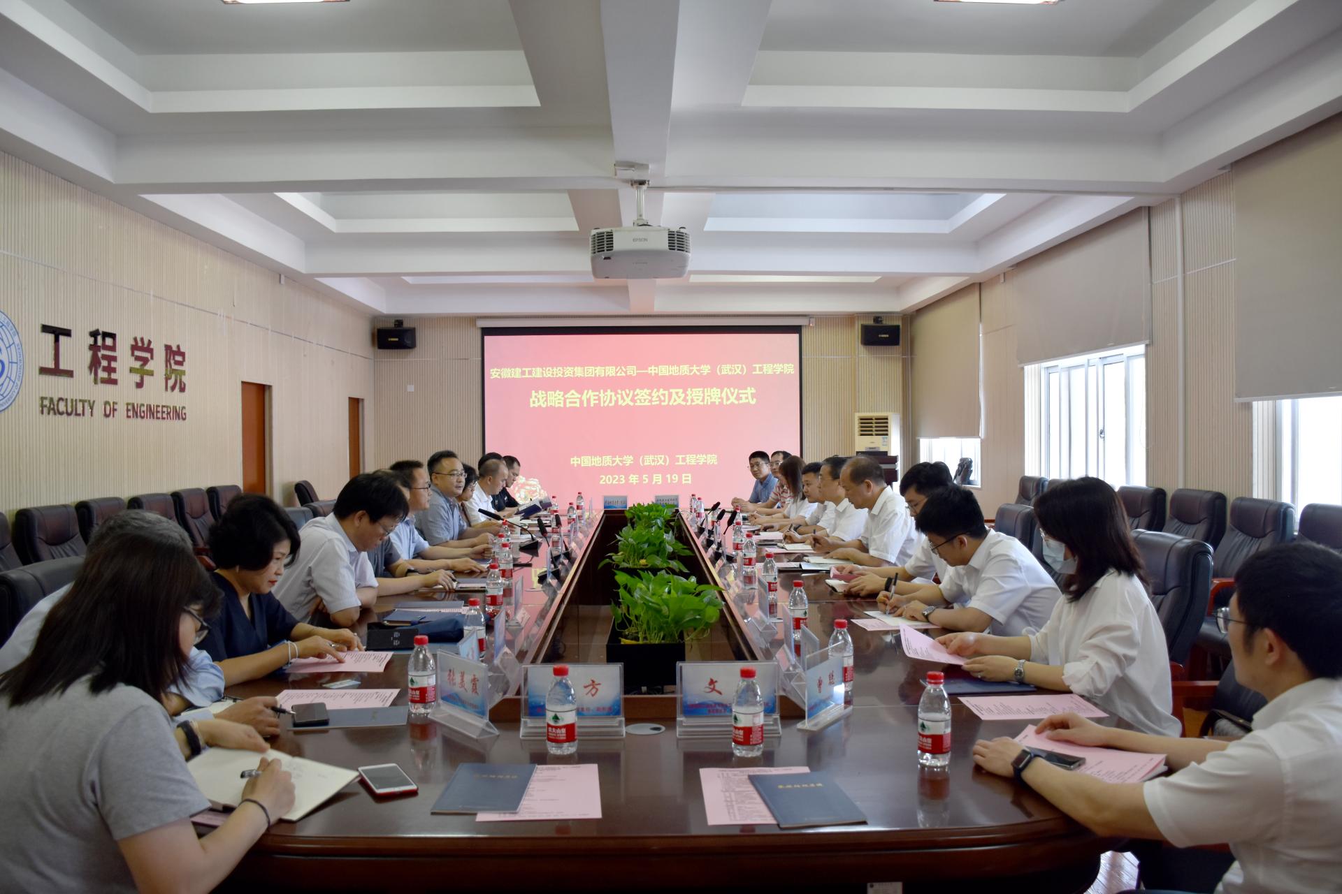 (通讯员 张美霞 王灿 冯焱 )5月19日,pp电子与安徽建工建设投资集团有限公司(以下简称:建设投资集团)签署战略合作协议。建设投资集团副书记干戈,党委委员、副总经理、总工程师陈莘,pp电子党委常委、副校长王力哲,校友与社会合作处副处长、深圳研究院副院长王强,我院党委书记李红丽,党委副书记、院长焦玉勇,副院长章广成及双方相关人员参加合作座谈会和签约仪式。李红丽主持会议。
