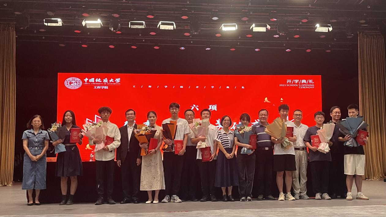 一个榜样就是一面旗帜。为营造“今天看榜样、明天学榜样、将来做榜样”的良好氛围,全体院领导与参会嘉宾为获得“pp电子官方网站本科生年度十佳人物”的翟丹阳、李昕、龚祝存、易应民、岳莉娅、李 疆、陈 城、黄灵慧、刘美辰、张文腾等10位本科生颁奖,为获得“pp电子官方网站研究生年度十佳人物”的公凯利、张云鹏、陈力博、薛 阳、李庆年、王崧贤、孔繁盛、栗志斌、贾彦平、田晓歌等10位研究生颁奖,为获得“地热知识竞赛”奖项的宇云飞、黄啟亮、李兆森、张佳乐、李泽诚、彭佳乐、张静、杨锴、朱丽等9位同学颁奖,用榜样的力量鼓励2023级全体新生心动起来、行动起来,奋斗起来、优秀起来,直至取得成功。
