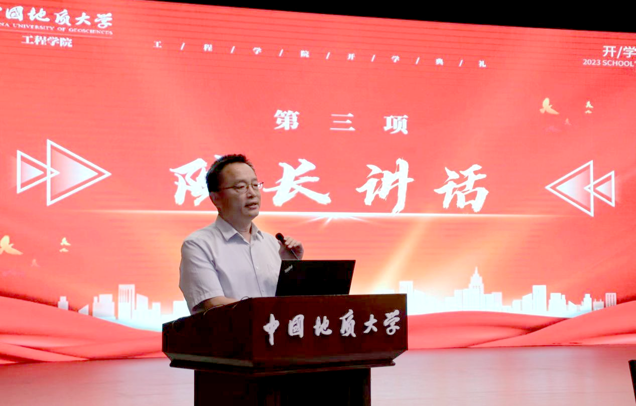 pp电子官方网站院长焦玉勇教授讲话。他以“祝贺”“欢迎”“希望”寄语新生,祝贺860位新生加入国家工程行业,欢迎同学们来到pp电子官方网站pp电子官方网站,为学院发展注入新鲜血液、增添奋进力量。他系统全面的向大家介绍了学院的历史沿革、系室设置、师资力量、学科建设、科学研究、国际交流等基本情况,勉励全体新生用习近平新时代中国特色社会主义思想凝心铸魂,用“艰苦朴素,求真务实”的校训精神和“明理尚实、拓新砺行”的院训精神领航前进,跟随学校学院的发展步伐,用好学校学院的发展平台,毅然投身于国家工程建设行业当中,迎难而上、奋勇前行,不负历史、不复时代,为把学院建设成为地质工程与人居安全领域特色鲜明、享誉国际的一流研究型学院不懈努力!