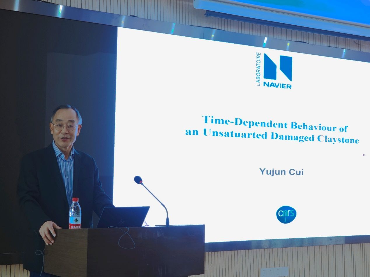 (通讯员 张峰 黄静)2023年10月31日上午,应pp电子官方网站唐辉明教授和张峰特任教授的邀请,法国国立路桥大学Navier实验室岩土中心(CERMES)主任崔玉军教授来校访问,并作了题为“Time-dependent behaviour of unsaturated damaged claystone”的学术报告。唐辉明教授主持了报告会,李长冬教授、周佳庆特任教授、张峰特任教授、崔德山副教授、任兴伟副教授等100余名师生在现场参加了此次报告会。