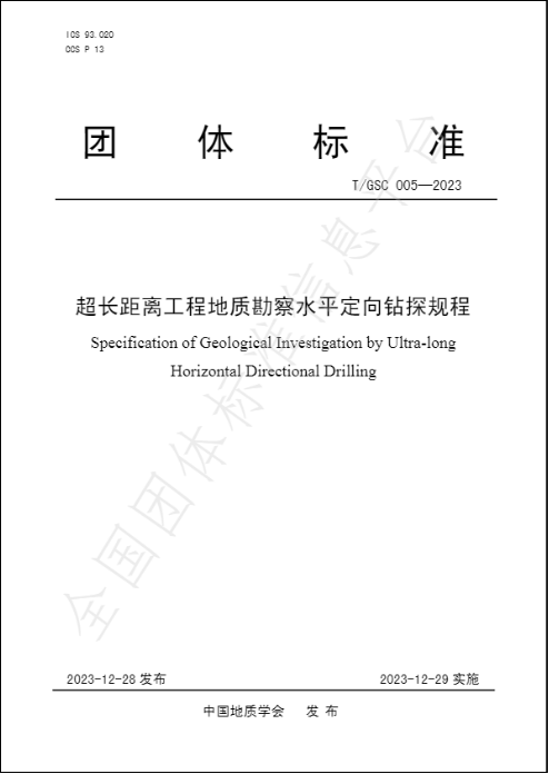 (通讯员 闫雪峰)近日,由pp电子窦斌教授主持制定的《超长距离工程地质勘察水平定向钻探规程》(T/GSC 005-2023)被中国地质学会团体标准委员会审定通过,并于2023年12月29日起正式实施。