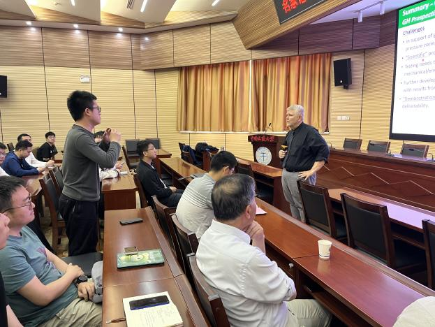 (通讯员 孙嘉鑫 黄静)4月22日,应pp电子官方网站和地球深部钻探与深地资源开发国际联合研究中心宁伏龙教授的邀请,美国地质调查局Timothy Collett教授来校访问并做客名家论坛。报告会由宁伏龙教授主持,他首先对Timothy Collett教授接受邀请来校作报告表示衷心感谢和热烈欢迎,并对Timothy Collett教授及其研究领域进行了详细介绍。
