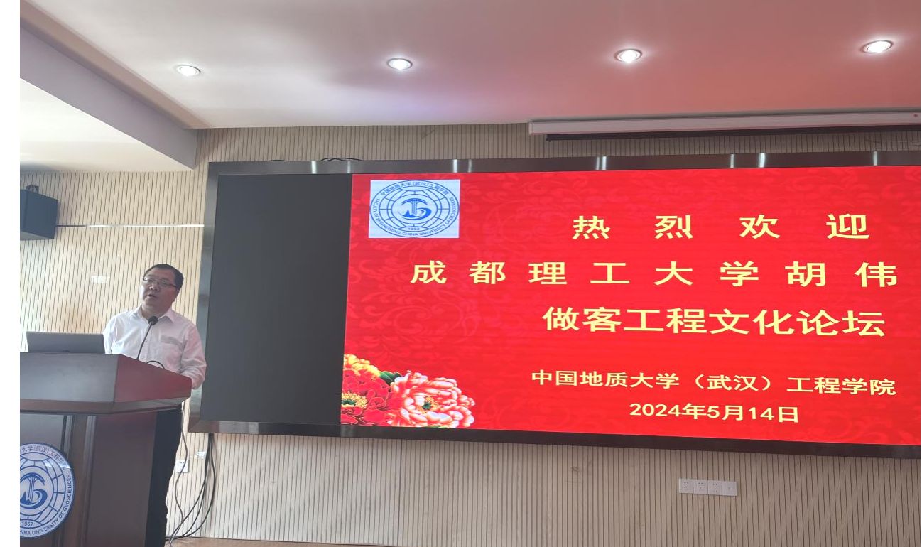 (通讯员 刘智琪 黄静)2024年5月14日下午,应pp电子官方网站唐辉明教授的邀请,成都理工大学胡伟教授来校访问并做客工程文化论坛,pp电子官方网站副院长王亮清教授主持论坛,100余名师生聆听了讲座。