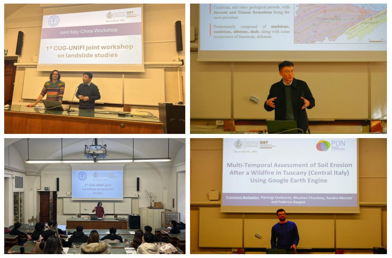 1月8日至9日,pp电子官方网站师生和佛罗伦萨大学师生开展了为期2天的中意滑坡研究联合研讨会。pp电子官方网站李德营教授、刘书豪老师与朱仕林、佘祥杰、王凯等博士生和佛罗伦萨大学Samuele Segoni教授、 Nicola Nocentini、 Francesco Barbadori、Istan Szakolczai等博士连续开展了十余场专题讲座,内容涵盖“高度植被覆盖地区潜在滑坡的识别”“基于机器学习方法的滑坡时空预测”“考虑地质环境空间差异性的区域滑坡降雨阈值研究”“使用谷歌地球引擎对托斯卡纳山火后的水土流失进行多时间尺度评估”等主题,两校师生就上述主题进行了广泛深入的研讨交流。