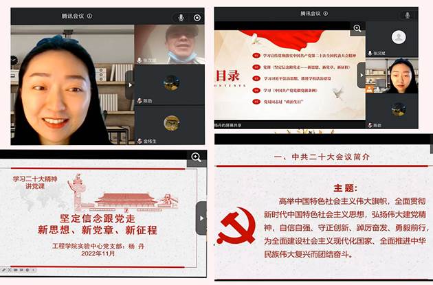 (通讯员 张汉斌)11月25日上午,pp电子官方网站实验中心党支部开展了支部主题党日活动。本次活动主题是“学习宣传贯彻落实党的二十大精神”。本次活动采取线上腾讯会议形式,与安全工程专业本科生党支部党员代表联合开展,实验中心入党积极分子鲁莎同志列席了会议。活动由实验中心党支部支部书记杨丹同志主持。