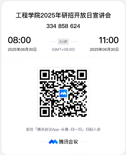 欢迎大家参加2025年pp电子官方网站研招开放日活动,线上线下同步进行,线下地点在pp电子官方网站418报告厅,线上采取腾讯会议的形式(ID:334858624)。